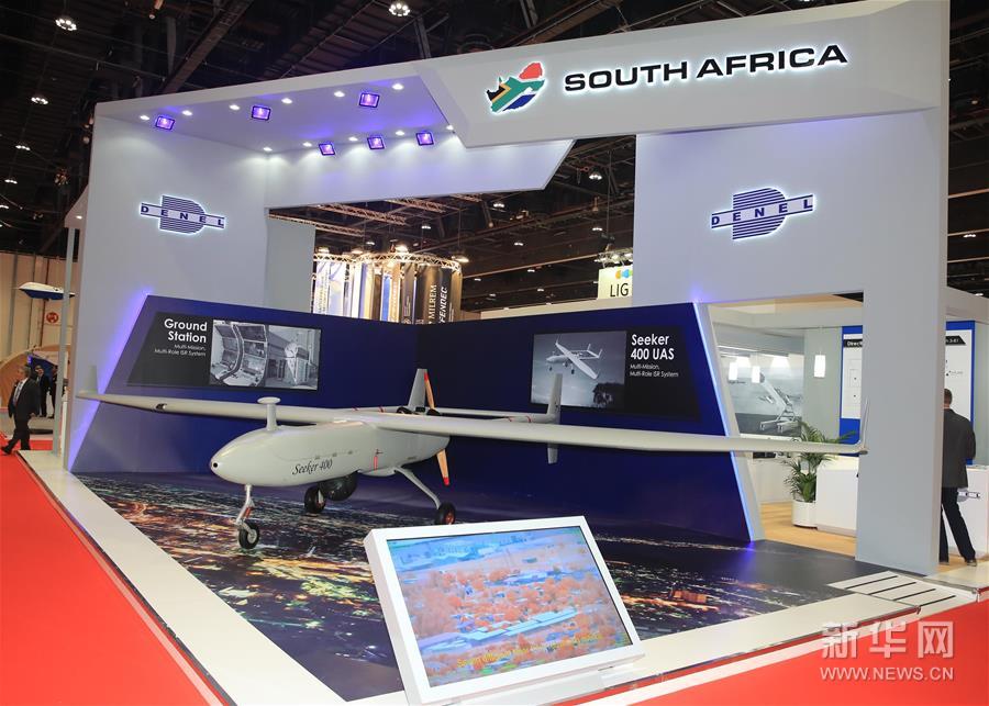 Photo taken on March 6, 2016 shows Seeker 400, an unmanned aerial vehicle manufactured in South Africa, at the second Unmanned Systems Exhibition & Conference in Abu Dhabi, United Arab Emirates. (Xinhua/An Jiang)