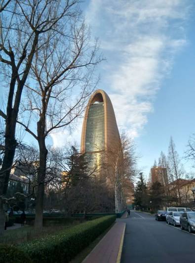 Picture is the new headquarter of People's Daily under a blue sky. (Photo: Du Yifei from People's Daily)