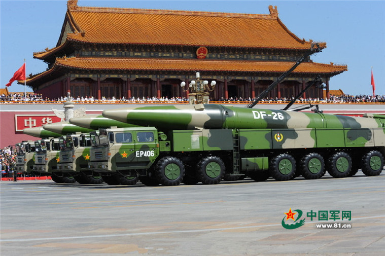 DF-26, a new-type long-range ballistic missile, made its first formal appearance in Beijing on Sept. 3, 2015 during the military parade marking the 70th anniversary of the victory of the Chinese People's War of Resistance against Japanese Aggression and the World Anti-Fascist War.