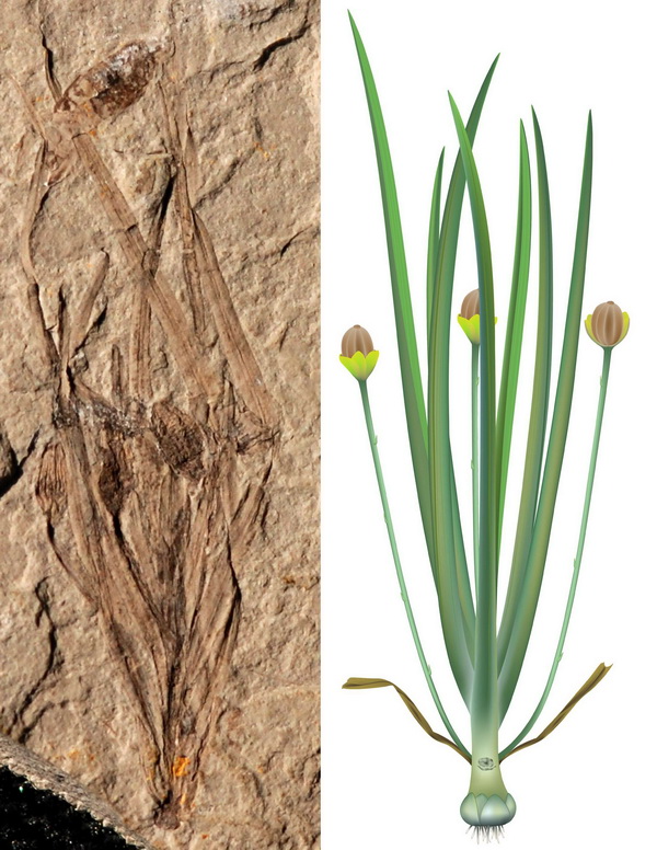 Fossil of the herbaceous angiosperm plant from the mid-Jurassic period (left), recovery plan for the herbaceous angiosperm plant (right). (File Photo)