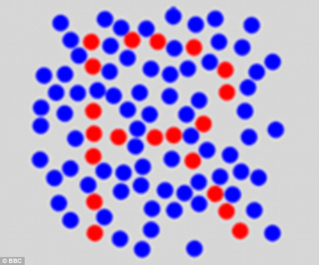 To take the test, you have to look at at a seemingly random pattern of red and blue dots and try to memorise the picture. You then do the same with a second combination of blue and red dots.