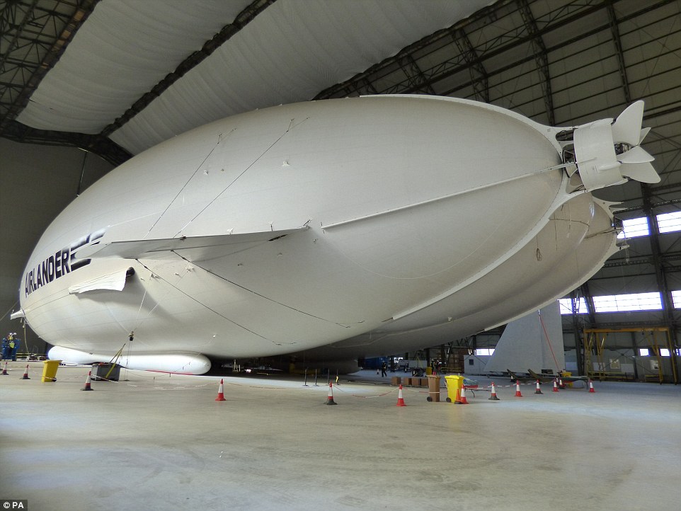 World's largest aircraft the Airlander 10 is fitted with fins and engines ahead of its first flight