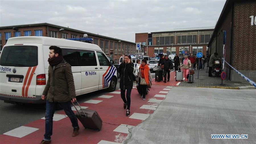 People are evacuated from Brussels airport in Brussels, Belgium, on March 22, 2016. At least 13 people were reportedly dead after explosions at Brussels airport and a metro station on Tuesday. [Photo: Xinhua]