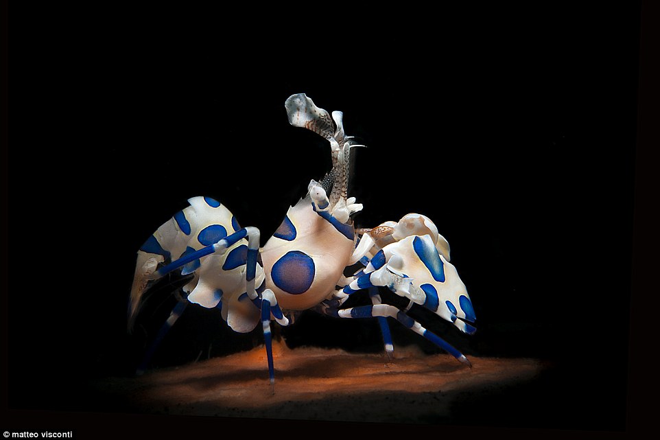 Speaking of his photograph, Matteo Visconti from Italy said: 'Harlequin shrimp (Hymenocera picta) are one of my best critters to shoot because of their colours and shape'