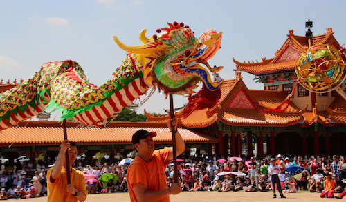 The longer the dragon, the more luck it will bring to the com- munity. As a result, communities strive to have very long dragon props during the New Year. Some dragons are so long that they require 20 to 30 people to hold them up.