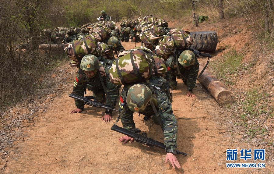 Special combat soldiers from the second detachment of Anhui People's Armed Police Corps conduct wading search training in a forest in Chaohu on March 23, 2016. On that day, the Hell Week code-named 'Hunter' entered the third day. The soldiers will face more than 30 training courses including long-range raid, jungle search, swimming in battle gear, field survival, and battlefield self-help. (Xu wei/Xinhua News Agency)