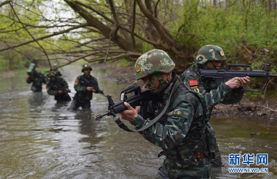 Special combat soldiers from the second detachment of Anhui People's Armed Police Corps conduct wading search training in a forest in Chaohu on March 23, 2016. On that day, the Hell Week code-named 'Hunter' entered the third day. The soldiers will face more than 30 training courses including long-range raid, jungle search, swimming in battle gear, field survival, and battlefield self-help. (Xu wei/Xinhua News Agency)