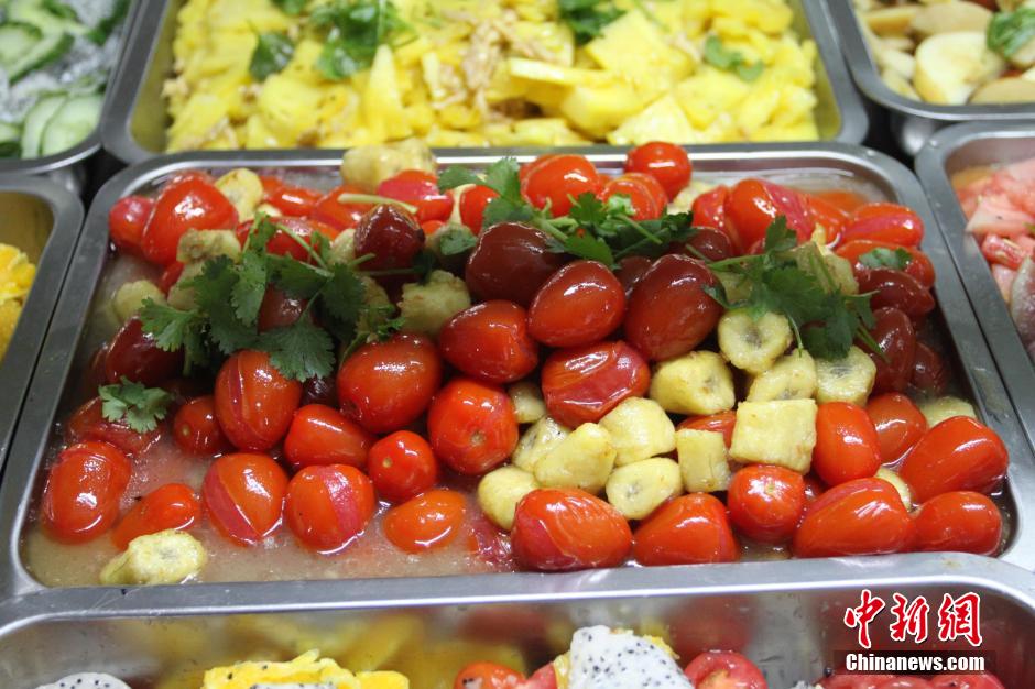 Stir-fried cherry tomato with bananas. (Chen zhiming/Chinanews.com)