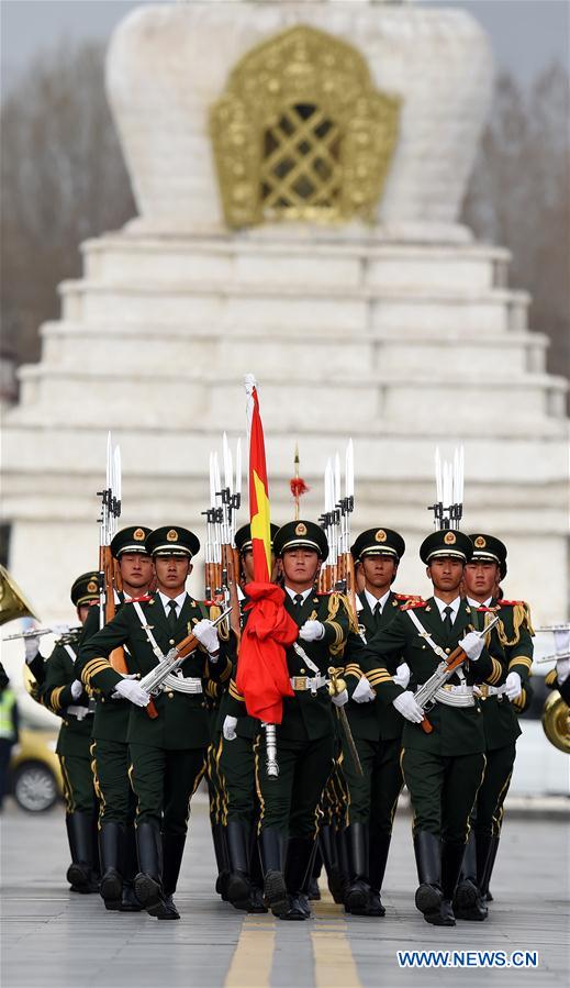 A flag-raising ceremony is held to celebrate the Serfs' Emancipation Day in Lhasa, southwest China's Tibet Autonomous Region, March 28, 2016. In 2009, March 28 was designated as the day to mark the freeing of 1 million people, or 90 percent of the region's population at that time, from the feudal serf system in 1959. (Xinhua/Chogo)
