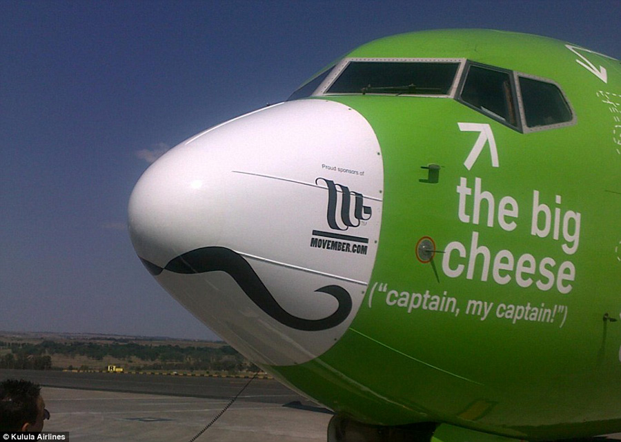 This livery for Kulula Airlines featured a moustache to coincide with Movember and raise awareness and funds for men's health.