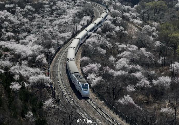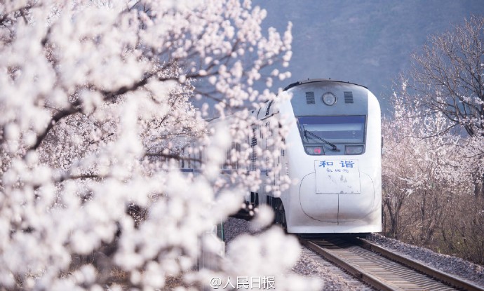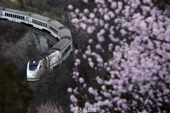 Photos showing a train running through a field of flowers near the Juyongguan Pass of the Great Wall in Beijing recently went viral online. Since the photos have become so popular, many photographers have come to Juyongguan Pass to capture the beautiful spring scenery. However, the best shooting location — the mountain road — has been temporarily closed.