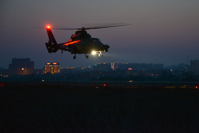 A WZ-9 attack helicopter lifts off from an airfield in Eastern China's Fujian Province to participate in the round-the-clock flight training. Multi-type helicopters with an Army aviation regiment of the 31st Group Army under the PLA Eastern Theater Command carried out round-the-clock flight training on March 28, 2016 with the purpose of honing troops' all-weather operational capabilities. (Chinamil/Xiao Qingming)