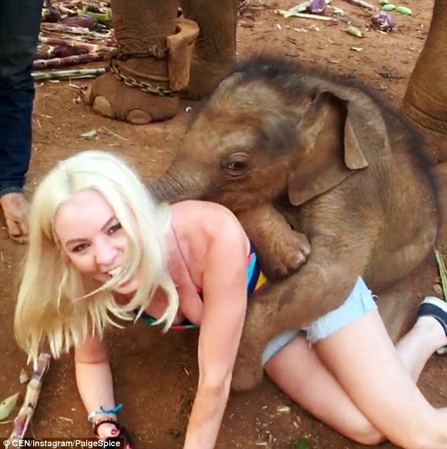 Images of the encounters between Nampuu and unwitting tourists show visitors screaming in delight as the cheeky calf climbs on top of them, falls between their arms and wraps his trunk around their heads.