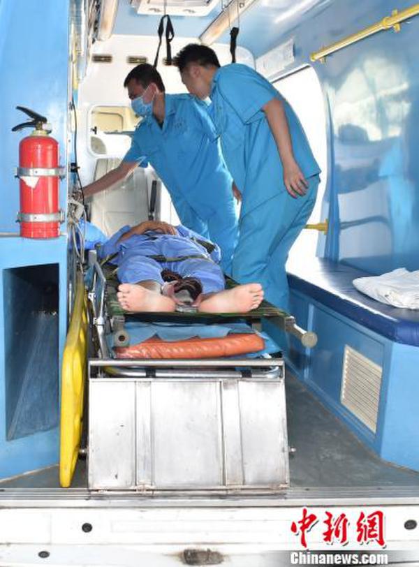 The aircraft landed in Yongshu Jiao Airport, picked up the three workers and sent them to Sanya Phoenix Airport in south China’s Hainan province. Li Wanmei, one of the workers had massive gastrointestinal bleeding and the other two suffered from vertebral fracture and possible appendicitis. The three were then transported to Hospital 425 in Sanya, Hainan.