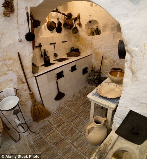 After WWII some cave residents were reluctantly moved from their crumbling homes into more modern abodes in the part of the town that's up on the cliff (pictured)