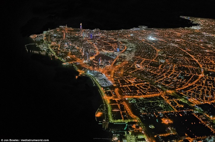 Captain Jon Bowles, 55, has travelled the equivalent of ten round trips to the moon. Taken from the flight deck, the stunning photos show some of the most recognizable places in the world from an-above earthly perspective, including Dubai, Bangkok, Tokyo and New York.