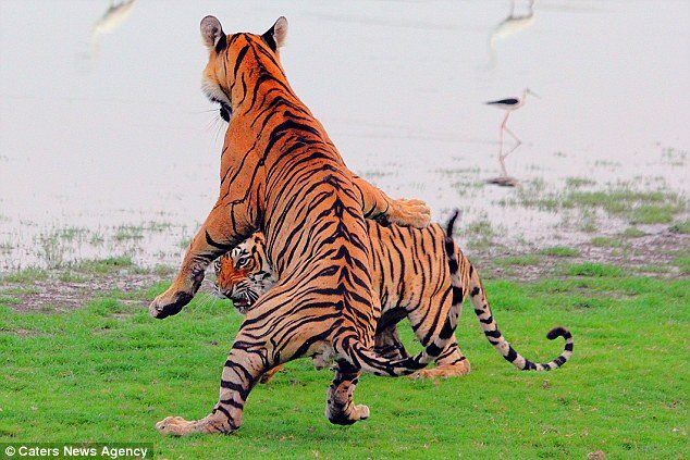 Your Kung Fu is no match for my tiger style! Giant cats show off their fighting skills as they clash in India (2)