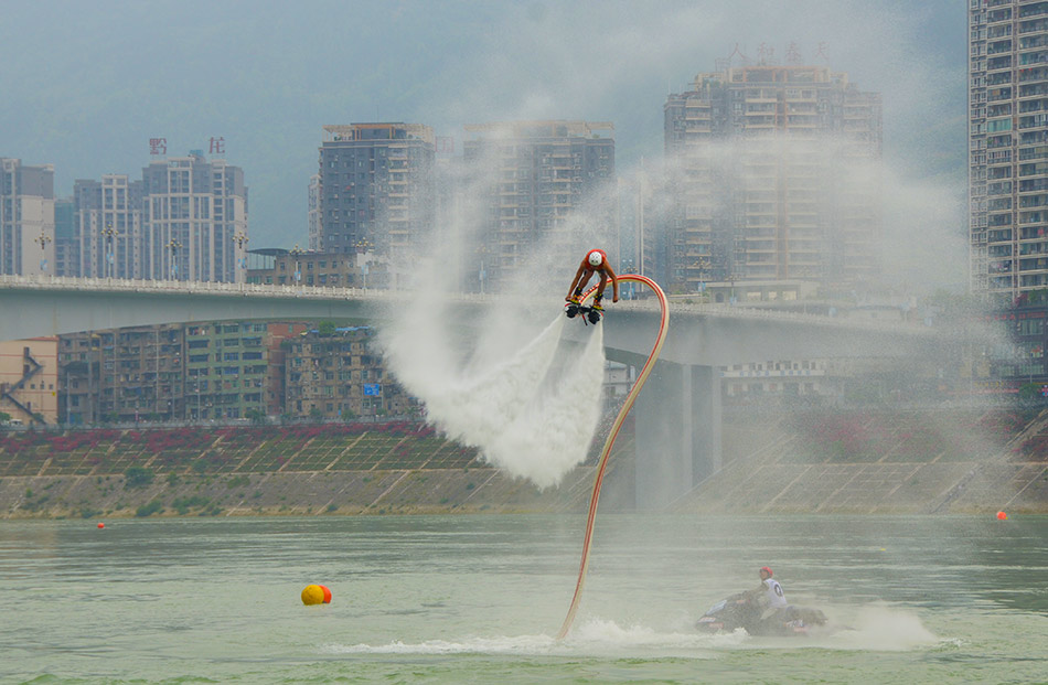 Competitors compete on the second day of The 6th China Powerboat League on May 13, 2016 at Pengshui Miao and Tujia Autonomous County, southwest China's Chongqing. (People's Daily Online/Yuan Can)