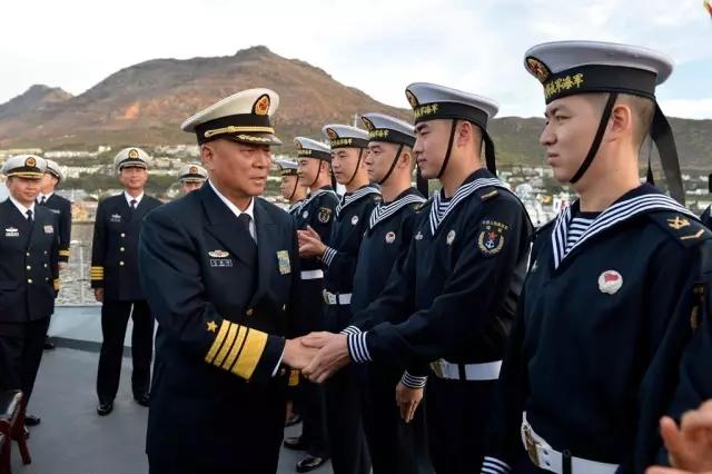 This is the first ever time that a PLA Navy commander has boarded a naval vessel while overseas. On board frigate Daqing, Wu inspected the guard of honor; on the decks of all three vessels, he chatted with officers and soldiers.