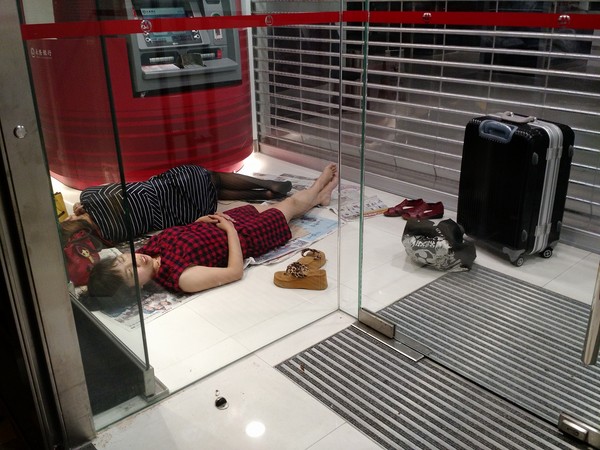 A photo showing two female tourists sleeping inside an ATM stall in Hong Kong has gone viral recently and drew debates and criticisms on the Internet.