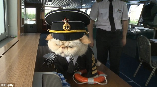 A toast with the captain of this cruise ship might be done with a glass of milk rather than something alcoholic - because there's a cat at the helm.