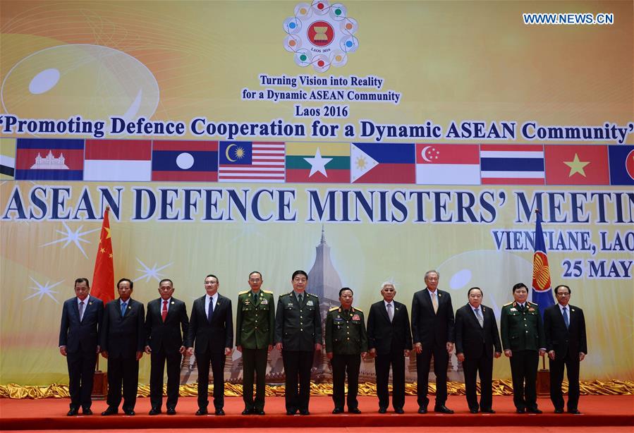 VIENTIANE, May 26, 2016 -- Chinese Defense Minister Chang Wanquan (6th L) poses for a group photo as he attends the 6th China-ASEAN Defence Ministers Informal Meeting in Vientiane, Laos, May 25, 2016. (Xinhua/Liu Ailun)