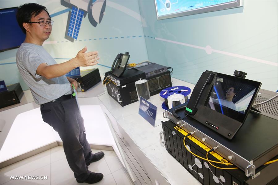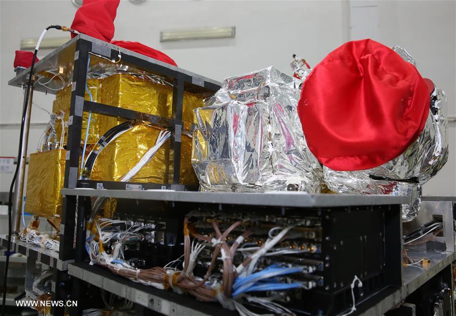 Photo taken on May 25, 2016 shows the equipments on the quantum satellite at Shanghai Engineering Center for Microsatellites, under the Chinese Academy of Sciences, in Shanghai, east China.