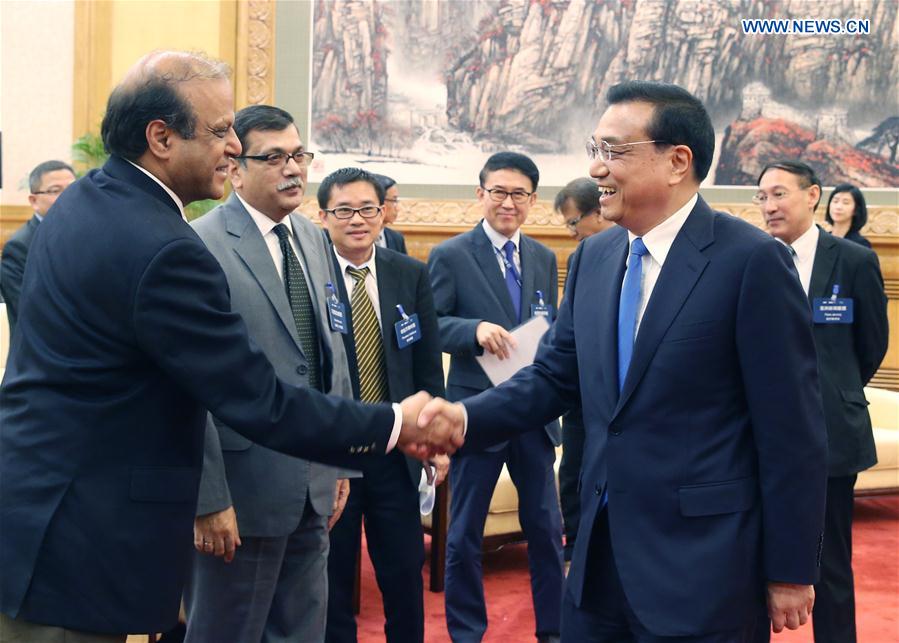 BEIJING, May 31, 2016 -- Chinese Premier Li Keqiang (R, front) meets with delegates from the annual board meeting of the Asia News Network (ANN) at the Great Hall of the People in Beijing, capital of China, May 31, 2016. (Xinhua/Yao Dawei)