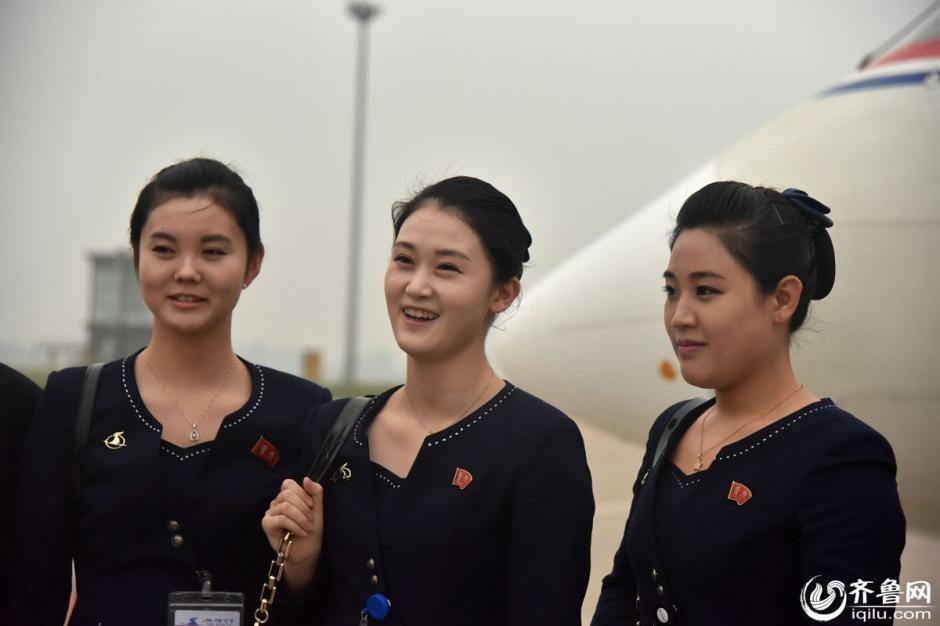 Air Koryo of the Democratic People's Republic of Korea officially launched direct flight between Pyongyang and Jinan City of eastern China's Shandong Province on Tuesday. Cabin crew in blue uniforms appeared at Jinan Int'l Airport.(Photo/iqilu.com)