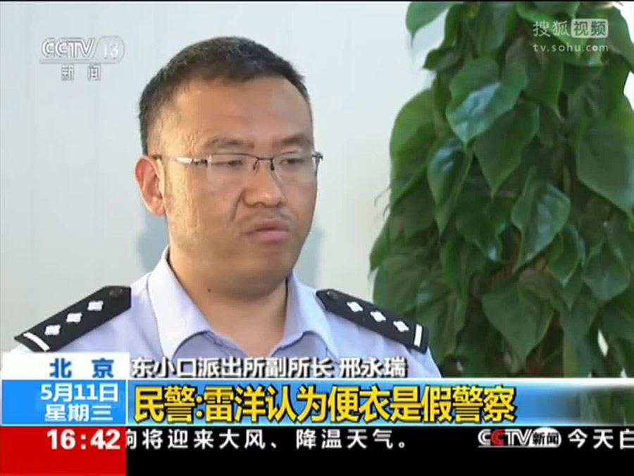 Screen shot shows police officer Xing Yongrui, who handled the case of Lei Yang, being interviewed after Lei was found dead