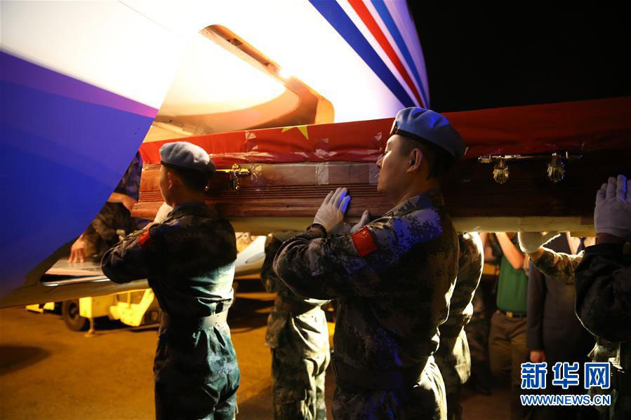 Photo taken on June 8, 2016 shows a plane carrying the body of Chinese peacekeeper Shen Liangliang who was killed in an attack in Mali has taken off for China from the Mali capital of Bamako. [Photo: Xinhua]