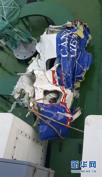 A photo shows a piece of wreckage of the search plane which has been discovered on June 16, 2016 in the sea near northern Vietnam. [Photo: Xinhua]