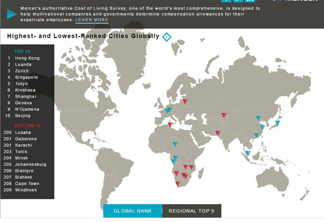 | (Snapshot of Mercer's Cost of Living Survey) |