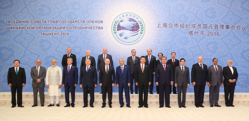 Members of the Shanghai Cooperation Organization take a family photo Meeting of the Council of the Heads of State of the SCO Member States on June 24, 2016 in in Tashkent, Uzbekistan. [Photo: Xinhua/Rao Aimin]