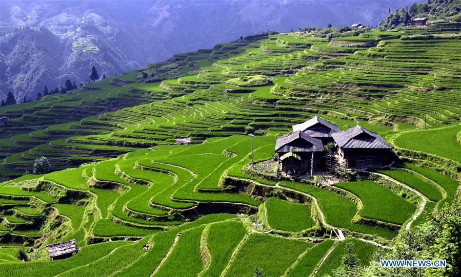 CONGJIANG, June 30, 2016-- Photo taken on June 29, 2016 shows terraced fields in Congjiang County, southwest China's Guizhou Province. (Xinhua/Liu Chaofu)