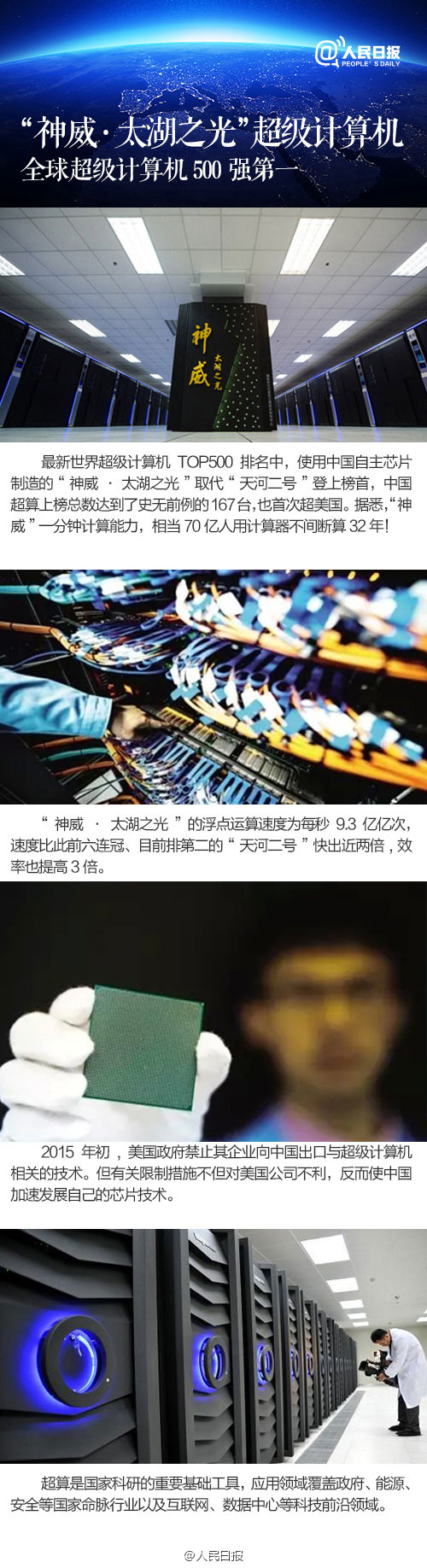 China's new supercomputing system, Sunway-TaihuLight, was named the world's fastest computer at the International Supercomputing Conference in Germany on June 20.