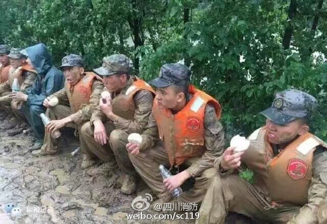 Photos of soldiers carrying sand bags through muddy fields in the heavy rain have abounded. Every soldier so far has carried around 300 bags on average, running back and forth over 600 times a day. They have had only water and steamed buns as sustenance. As a result, many people wish to pay tribute to the soldiers who have saved so many lives.