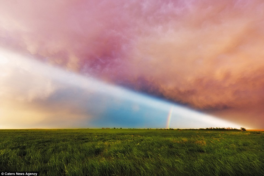 Post-storm perfection! After a day where eight tornadoes appeared from the Kansas sky, this stunning rainbow and skyline were captured by Mr Mezul.