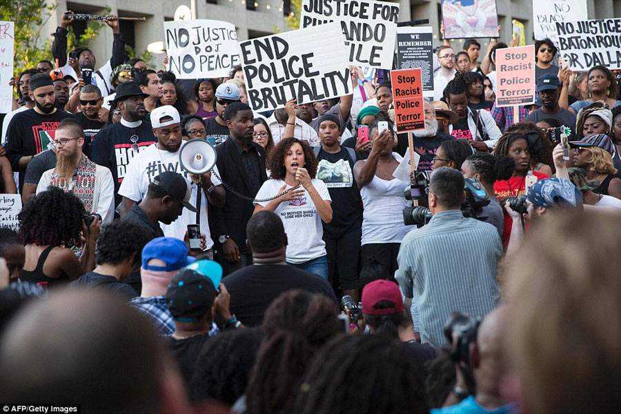 The shootings came as th ousands of people attended demonstrations against police brutality across America, with marches taking place in New York, Atlanta, Philadelphia, Chicago and Washington DC, as well as in Louisiana and Minnesota - where Sterling and Castile were killed.