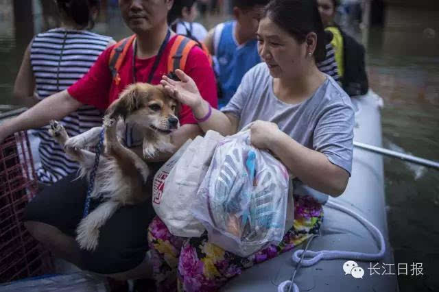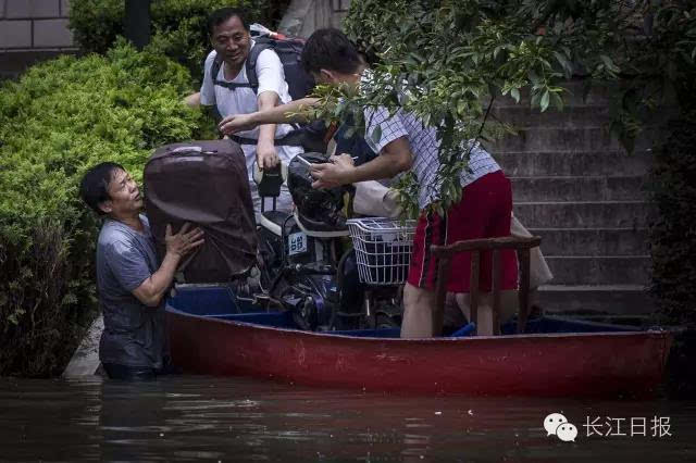 A colleague of Zhang shuttles residents during the flood. (Photo/Changjiang Daily)