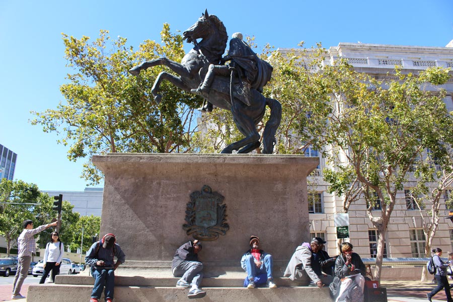 At 2 p.m., the temperature raises up to 20 °C. People gather under the Simon Bolivar Statue to enjoy the sunniest hour of the day.
