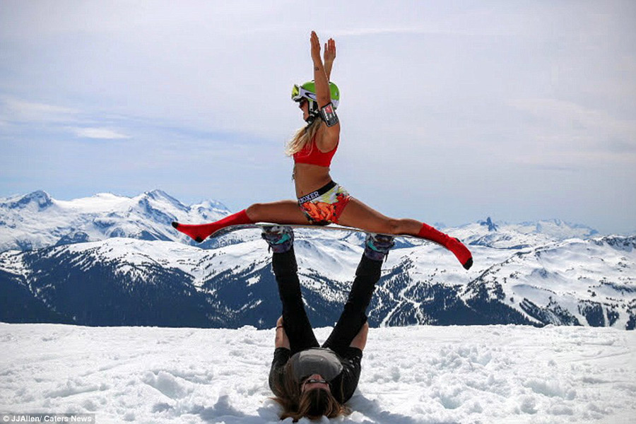 Followers are treated to snaps of the blonde bombshell pulling impressive poses in front of stunning backdrops. Above, Greta braves the cold and poses in a bikini in the snow in Whistler, Canada.