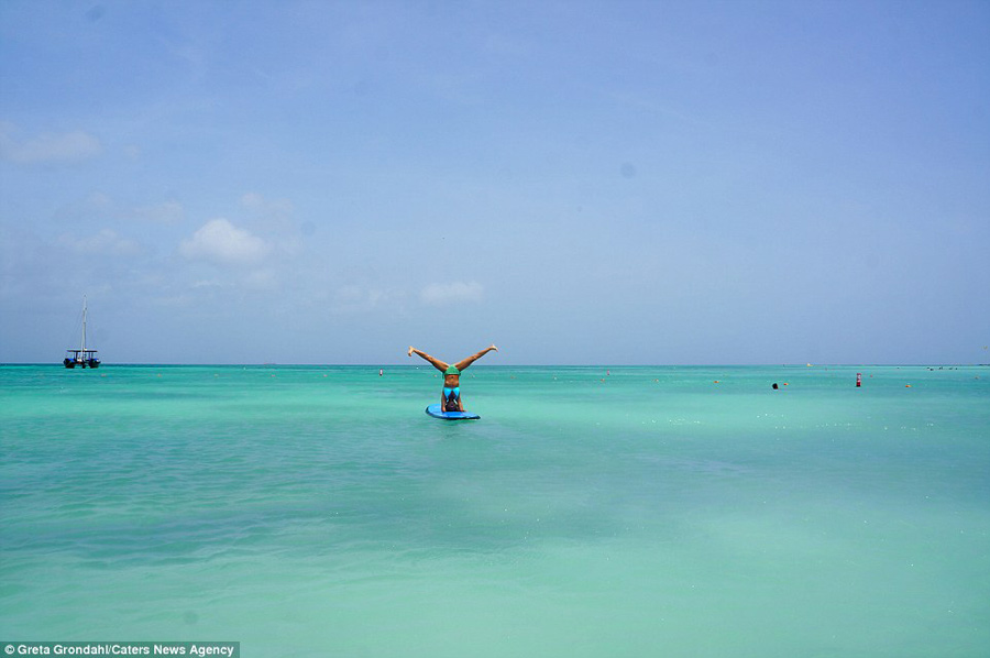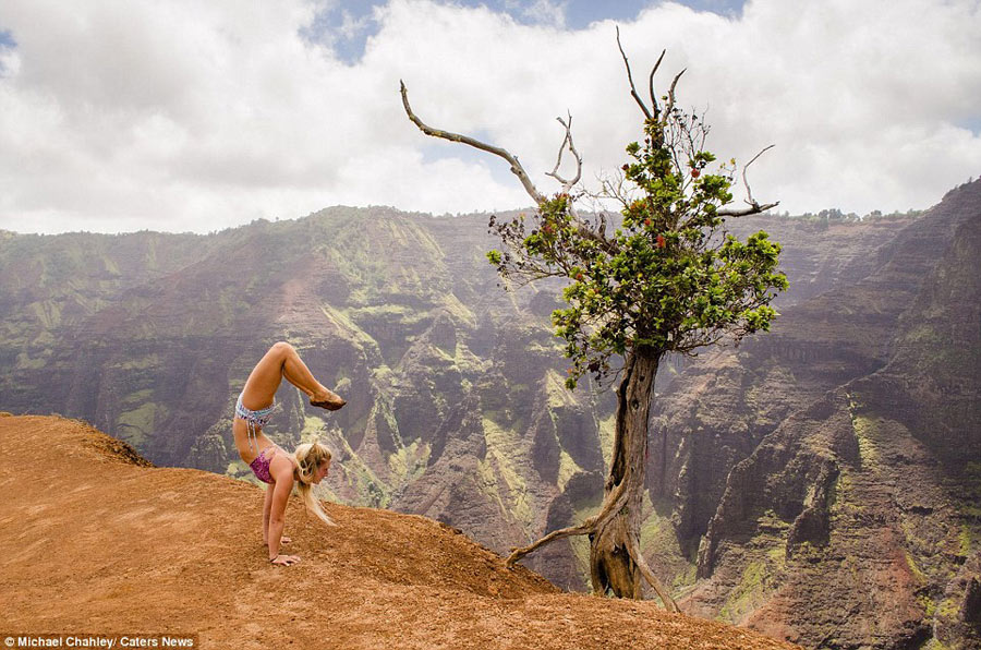 The yoga teacher from Gothenburg, Sweden, was just 13 years old when she first stepped on a yoga mat. And by the time she was 18, she was practising moves every day - sometimes up to three hours. She is pictured here in Oahu, Hawaii.
