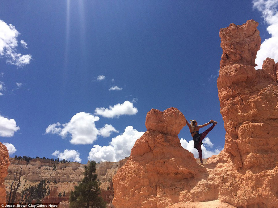 Greta extols the benefits of yoga in every day life, particularly keeping calm when travelling as it comes with many daily stresses. She is pictured here in Utah.