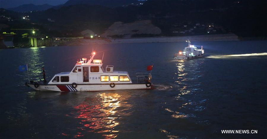 Rescuers search for missing people at the boat capsizing area in Wushan County of Chongqing, southwest China, July 29, 2016. The private boat capsized at about 5:40 p.m. in Wushan County where the Daning River meets the Yangtze. Ten people have been rescued. The cause of the accident remains unknown. (Xinhua)