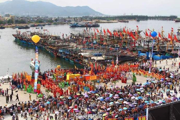 Local authorities and thousands of people held a traditional ceremony to celebrate the opening of the port at Ya- zhou, about 50 kilometers west of Sanya in Hainan province.