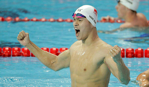 On Aug. 8, Chinese champion Sun Yang won the 200-meter freestyle event at the Rio Olympic Games with a time of 1 minute and 44.65 seconds. Four years ago, at the London Olympics, Sun won second place in the same event.