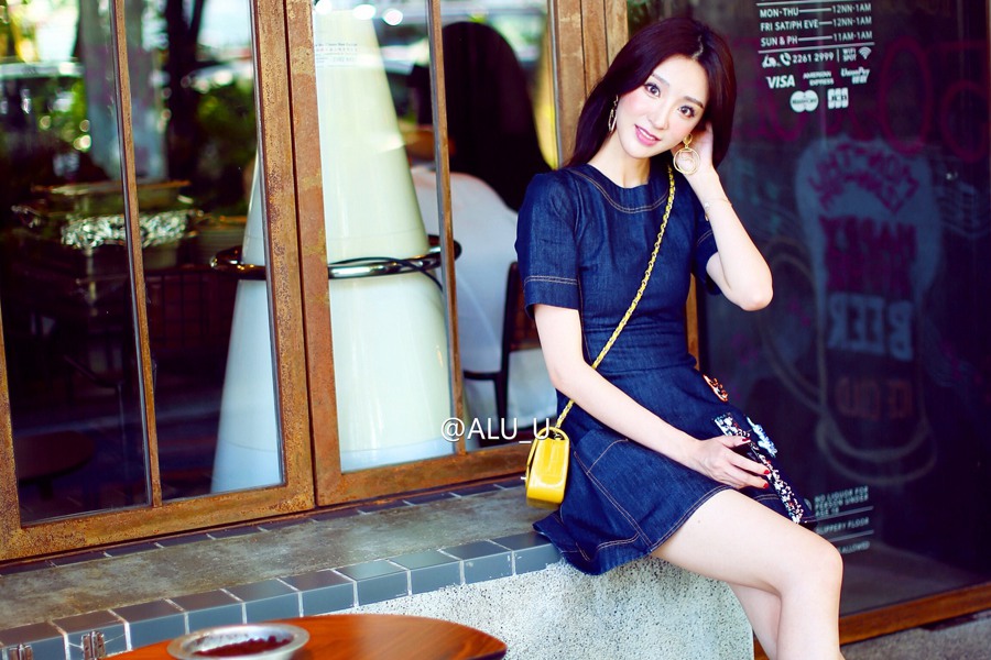 Fangjing, a professional model known as ALU_U on SinaWeibo, wears a denim dress and models for her fashion boutique Alu Studio on a photo posted on SinaWeibo, on July 26, 2016. [Photo/Sina Weibo]