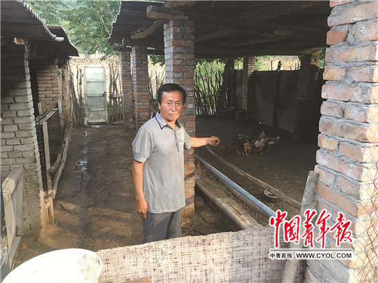 A farmer points at the empty pen, which now serves as the chicken house. (Photo/cyol.com)