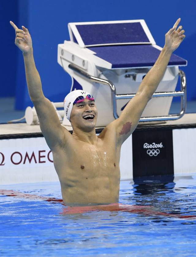 China's Sun Yang clinched his third Olympic gold medal on Aug. 8 by winning the men's 200m freestyle, which also gives him the third highest number of world swimming titles in individual events, only after Michael Phelps and Ryan Lochte. (Photo/Xihua)